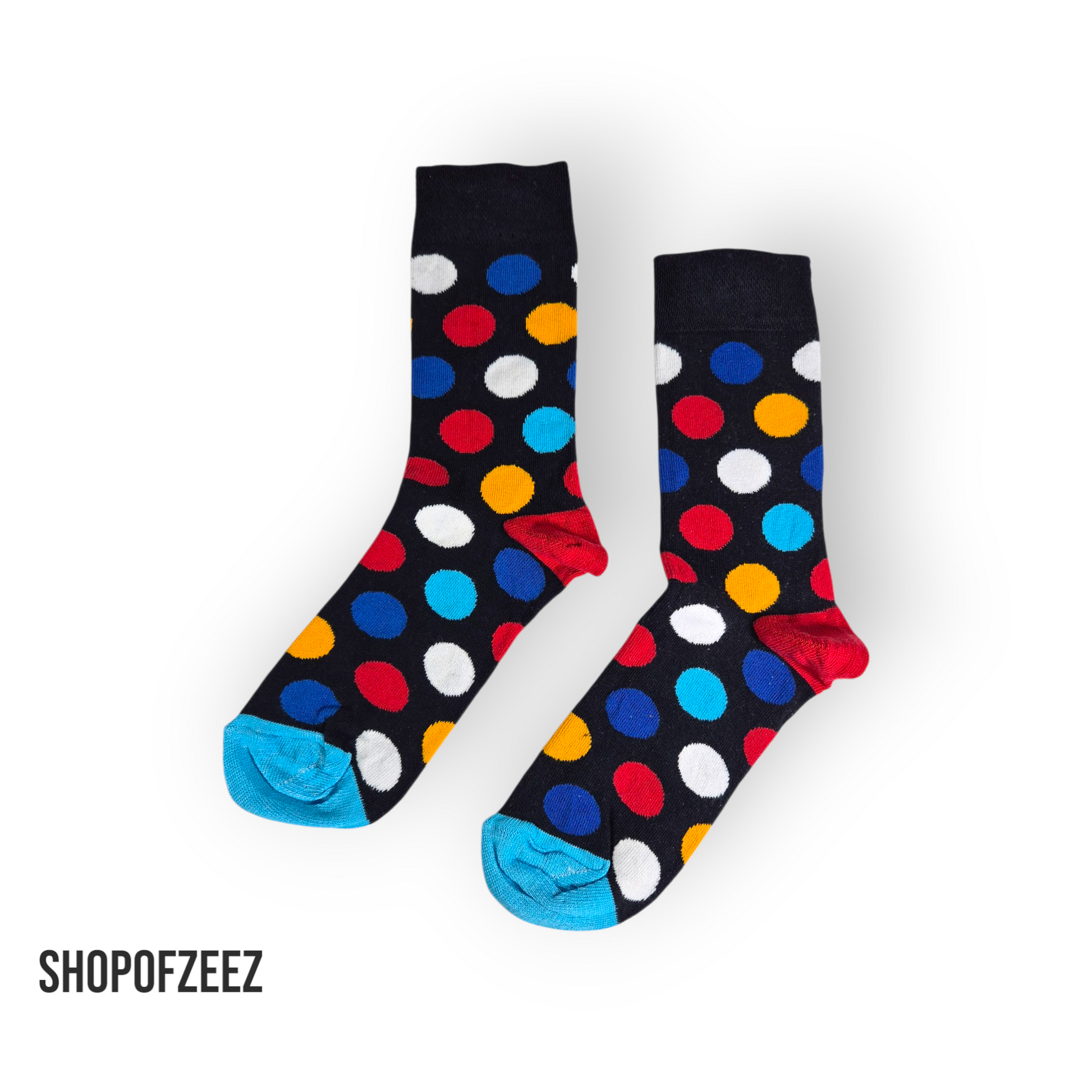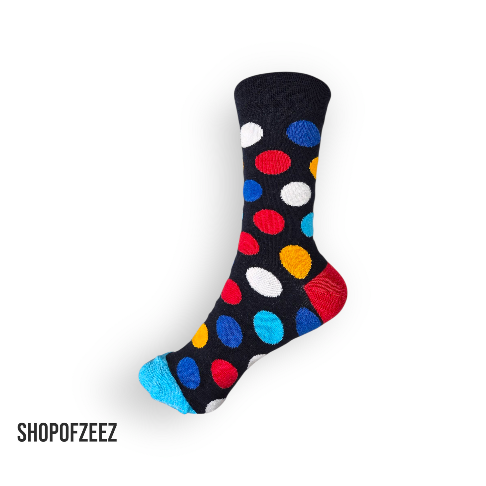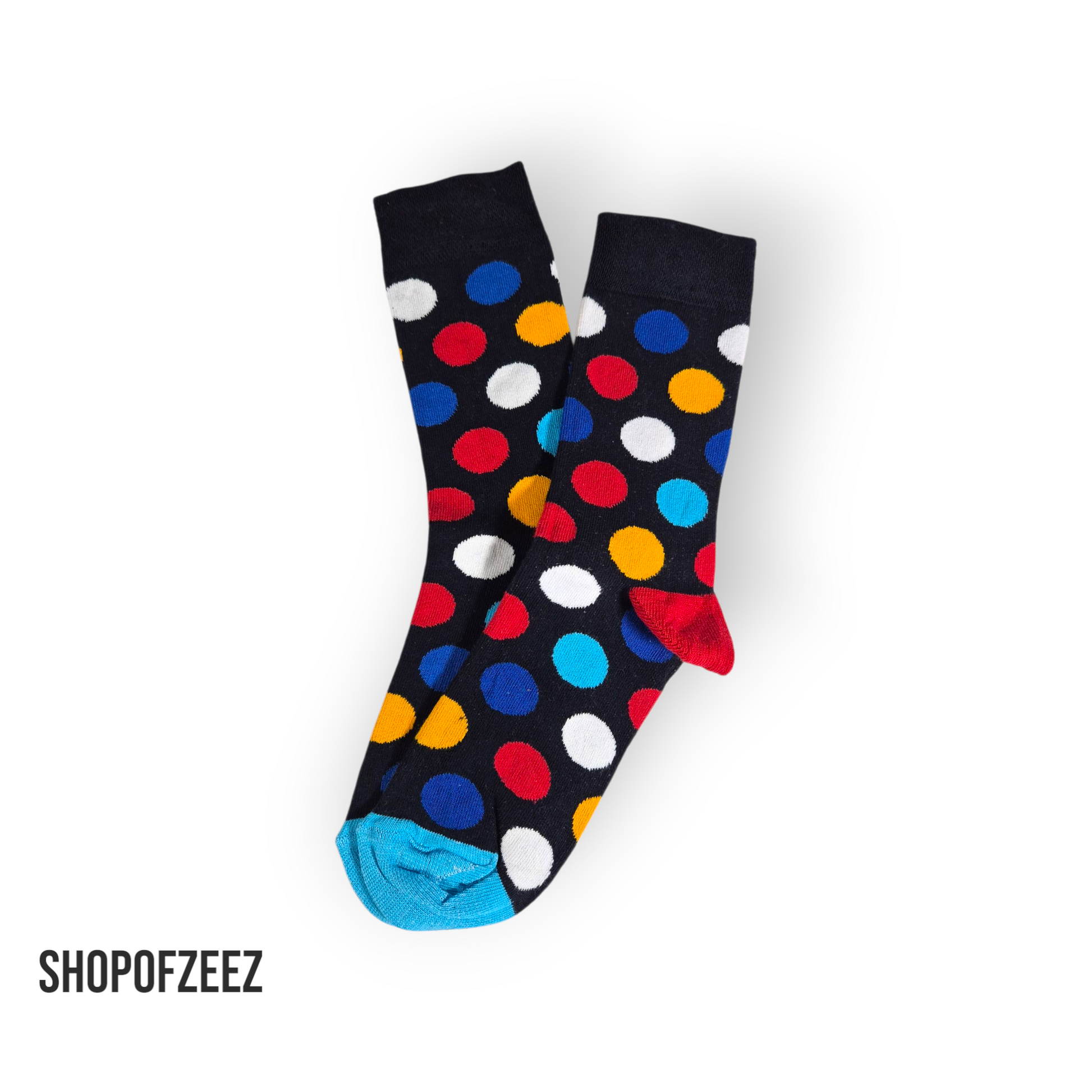 * Bunte Punktesocken sind eine wunderbar lebendige und fröhliche Ergänzung für jedes Outfit. Ihre leuchtenden Farben und markanten Punktemuster bringen sofort gute Laune und Stil in Ihren Look.