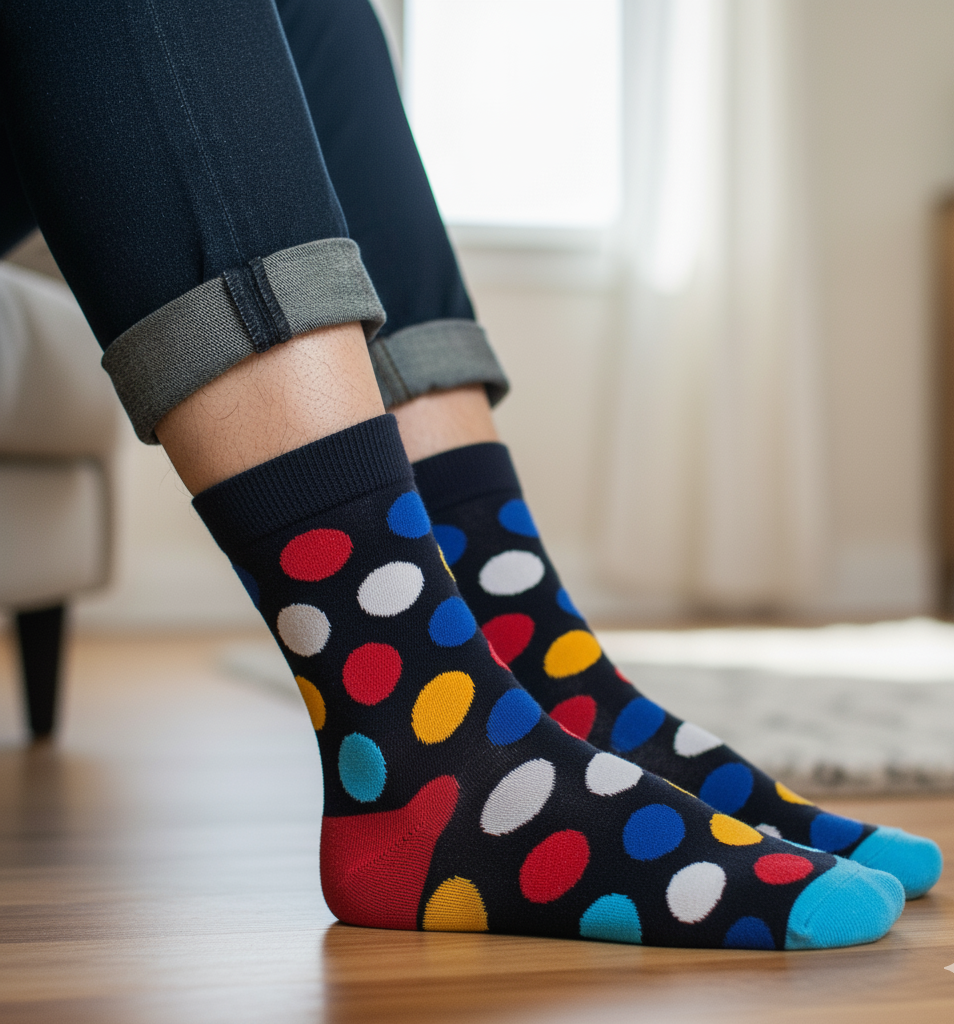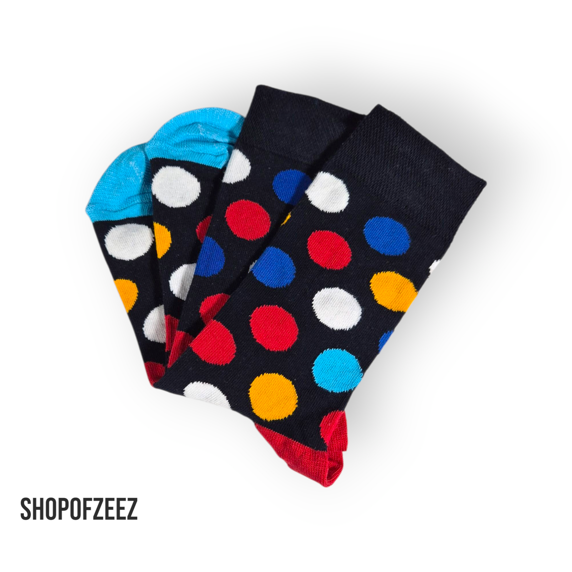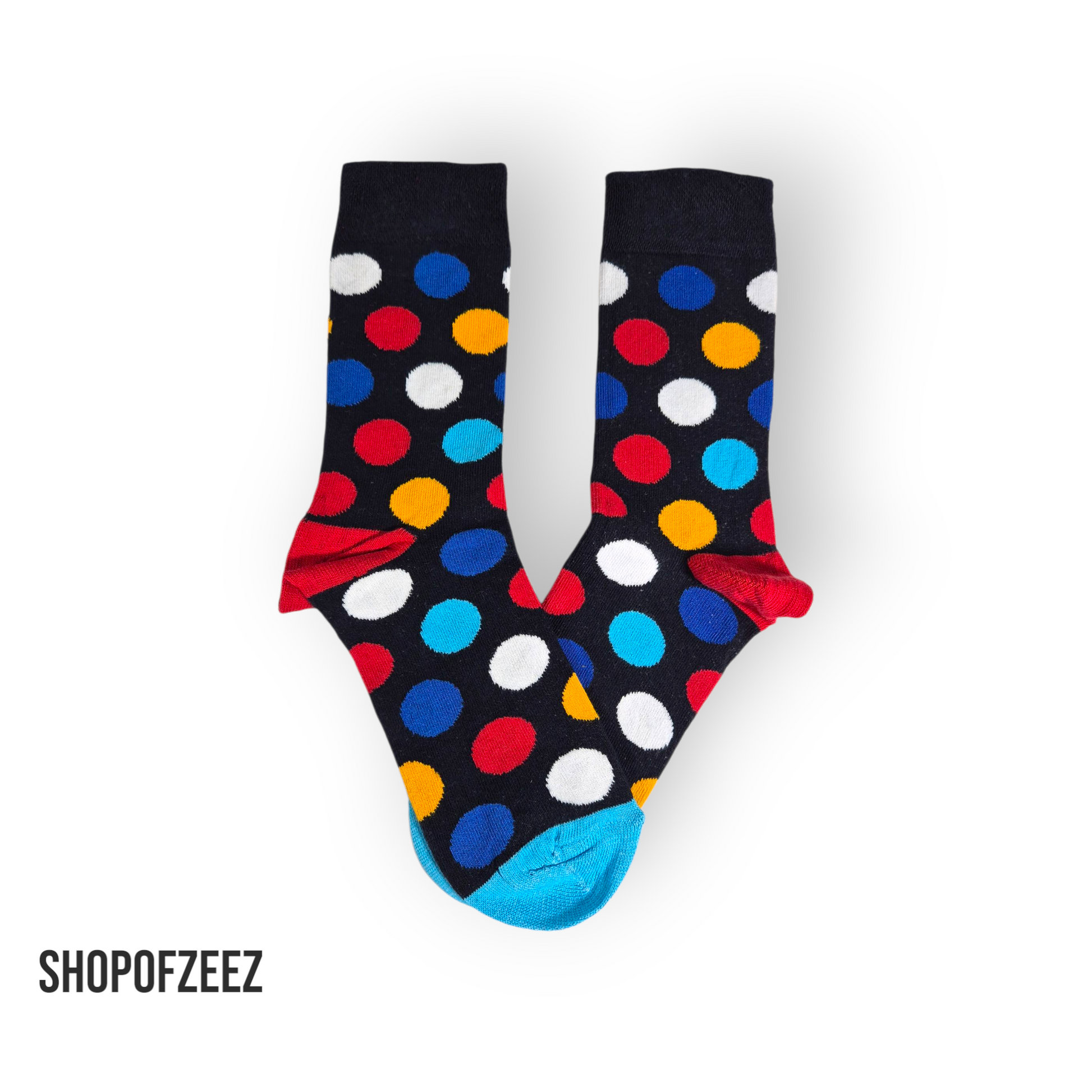 * Bunte Punktesocken sind eine wunderbar lebendige und fröhliche Ergänzung für jedes Outfit. Ihre leuchtenden Farben und markanten Punktemuster bringen sofort gute Laune und Stil in Ihren Look.