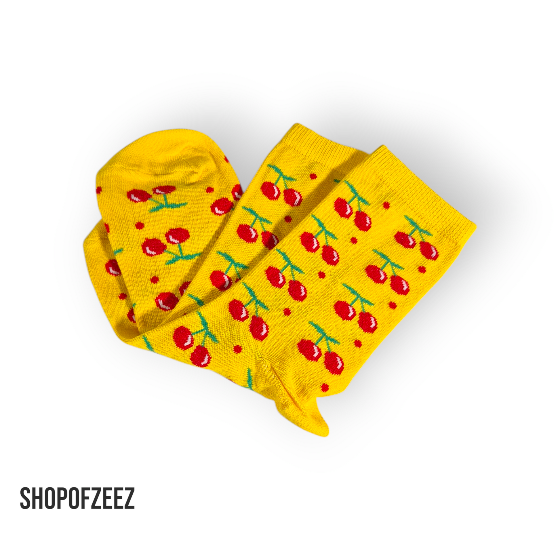 gelb Kirsche Socken, Einheitsgröße: 36-42