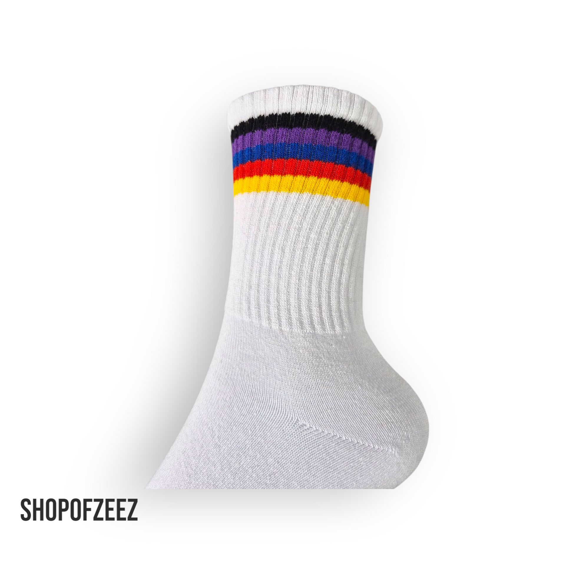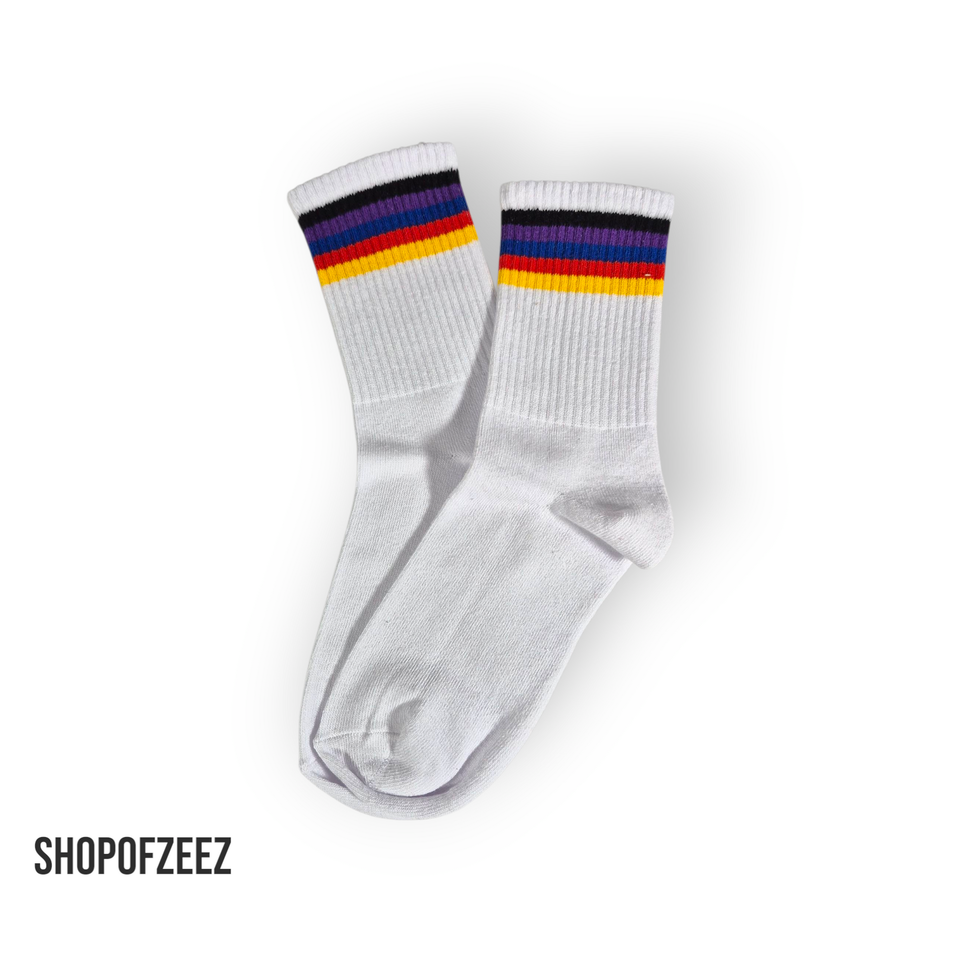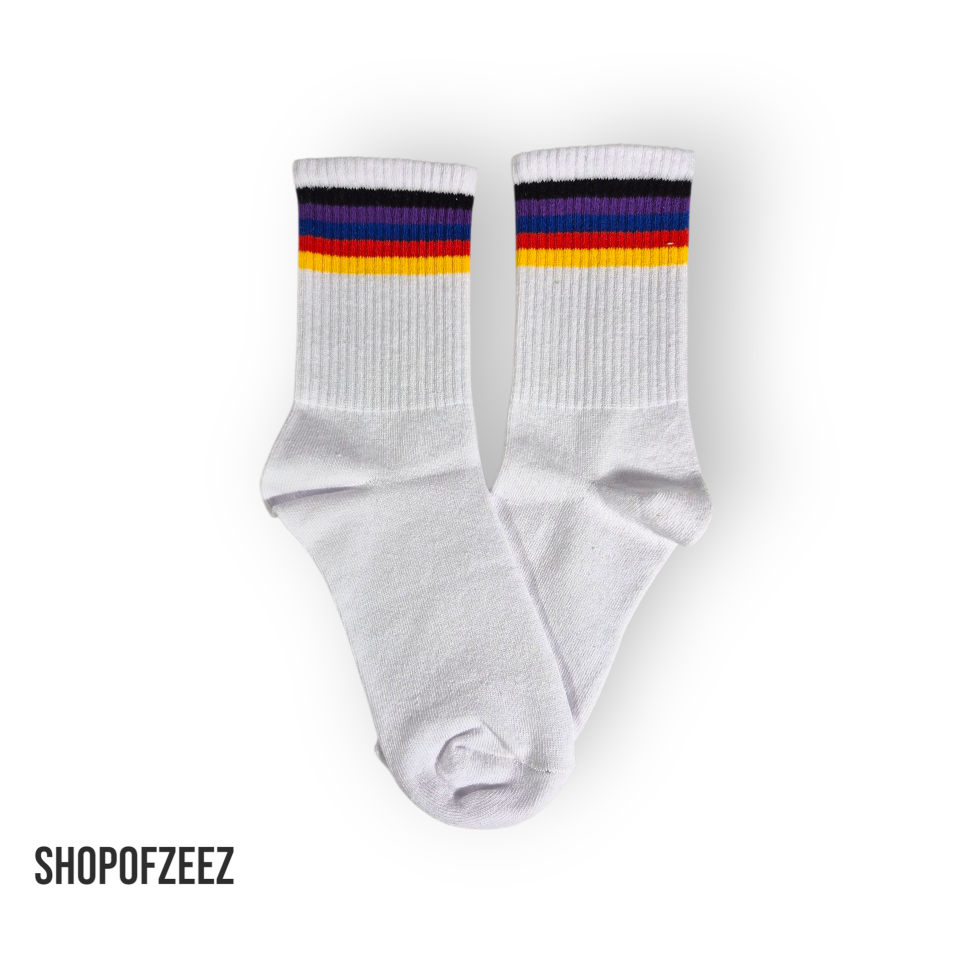 * Die Socken gibt es in einer Vielzahl von Farbkombinationen, von kräftigen Kontrasten in leuchtenden Farben wie Rot, Blau, Gelb und Weiß bis hin zu dezenteren Pastelltönen, die harmonische Farbübergänge zeigen.