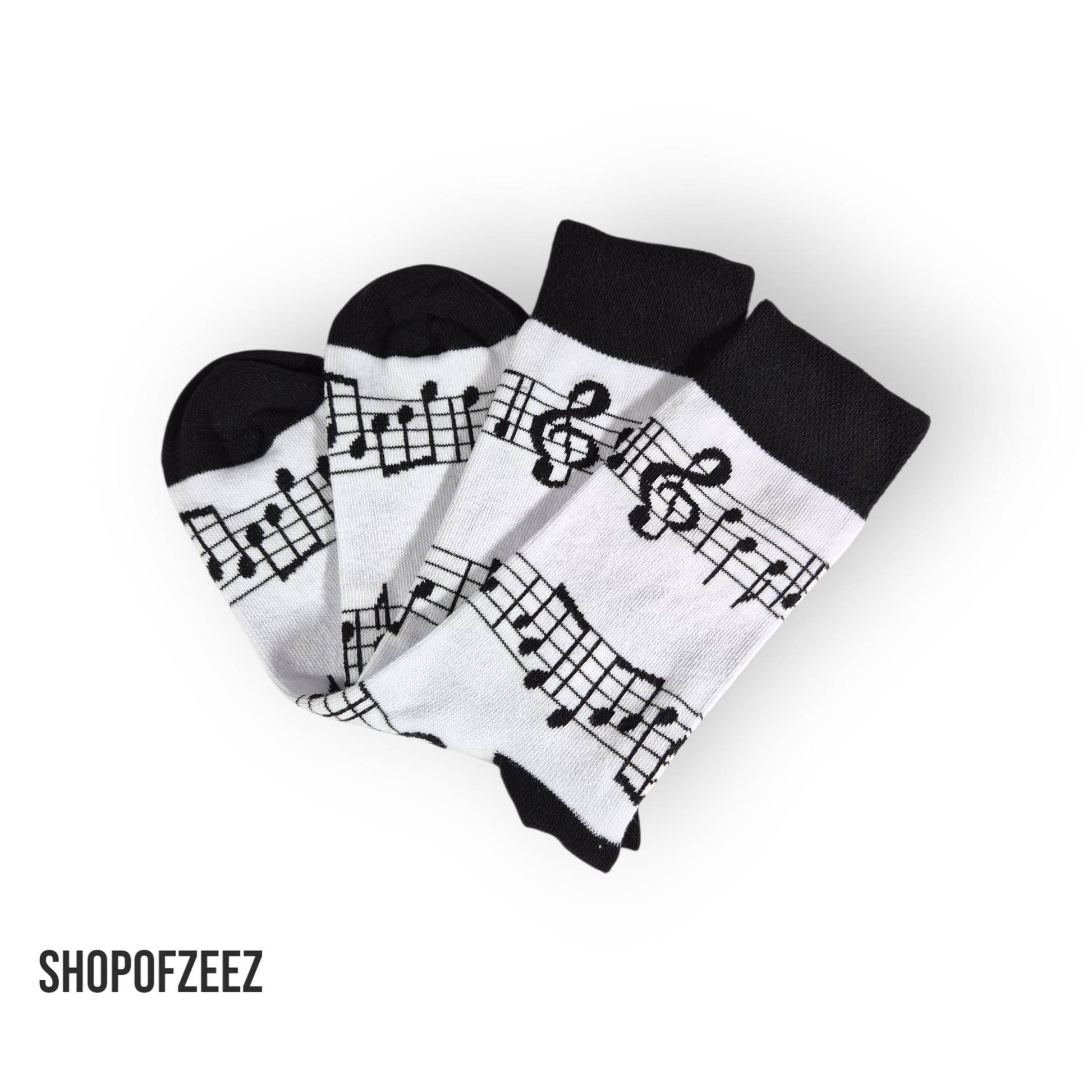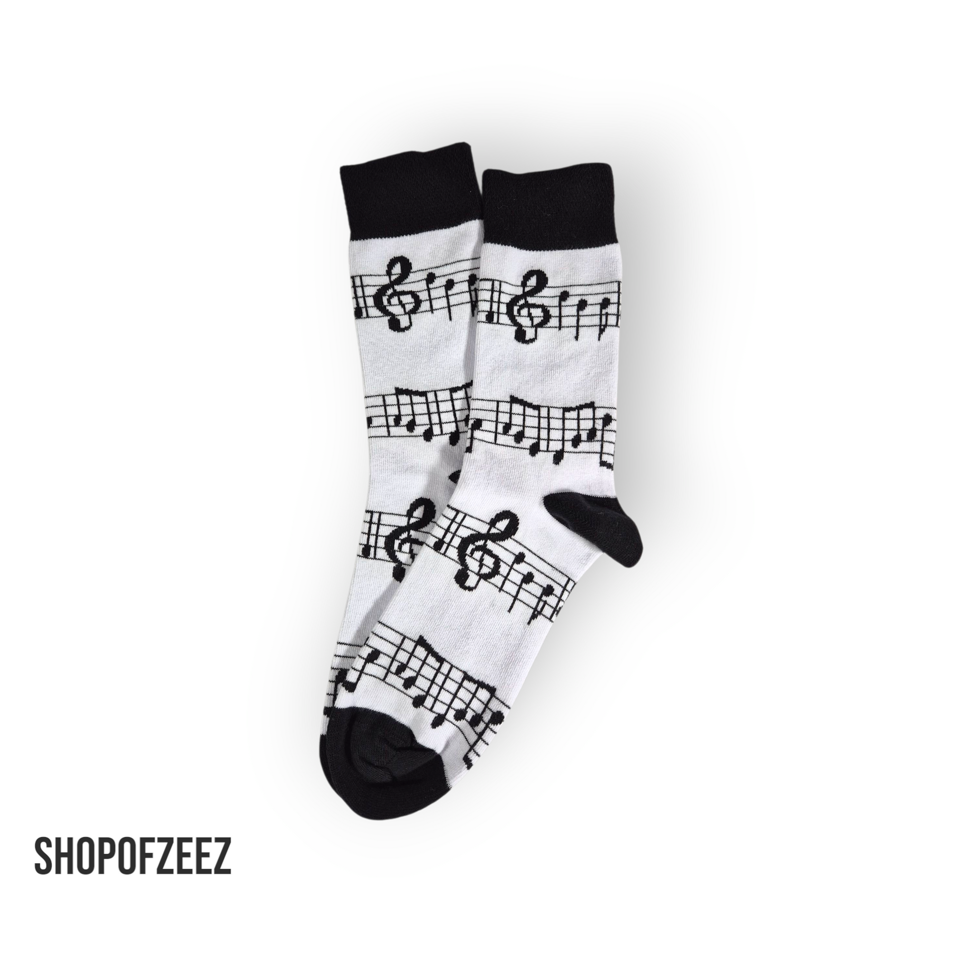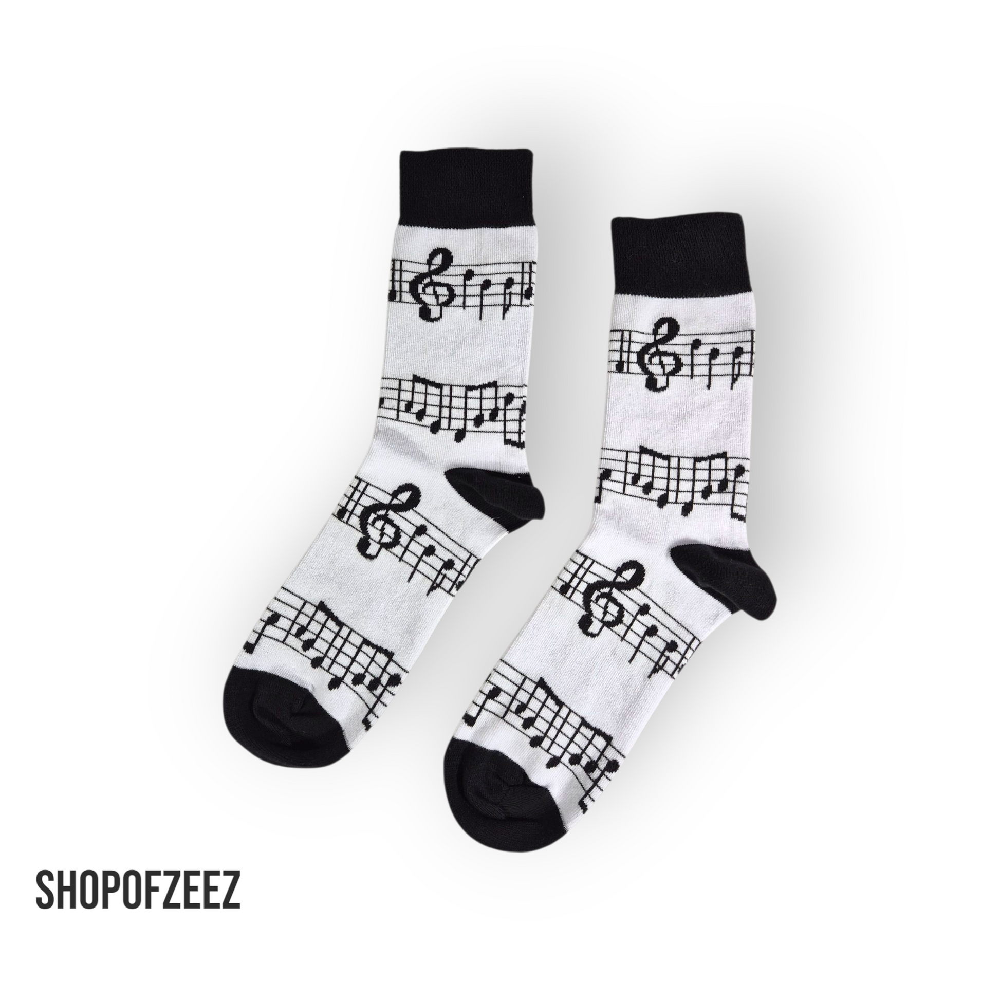 Musiknoten Socken – Weiße Baumwollsocken mit Notenmuster für Musikliebhaber