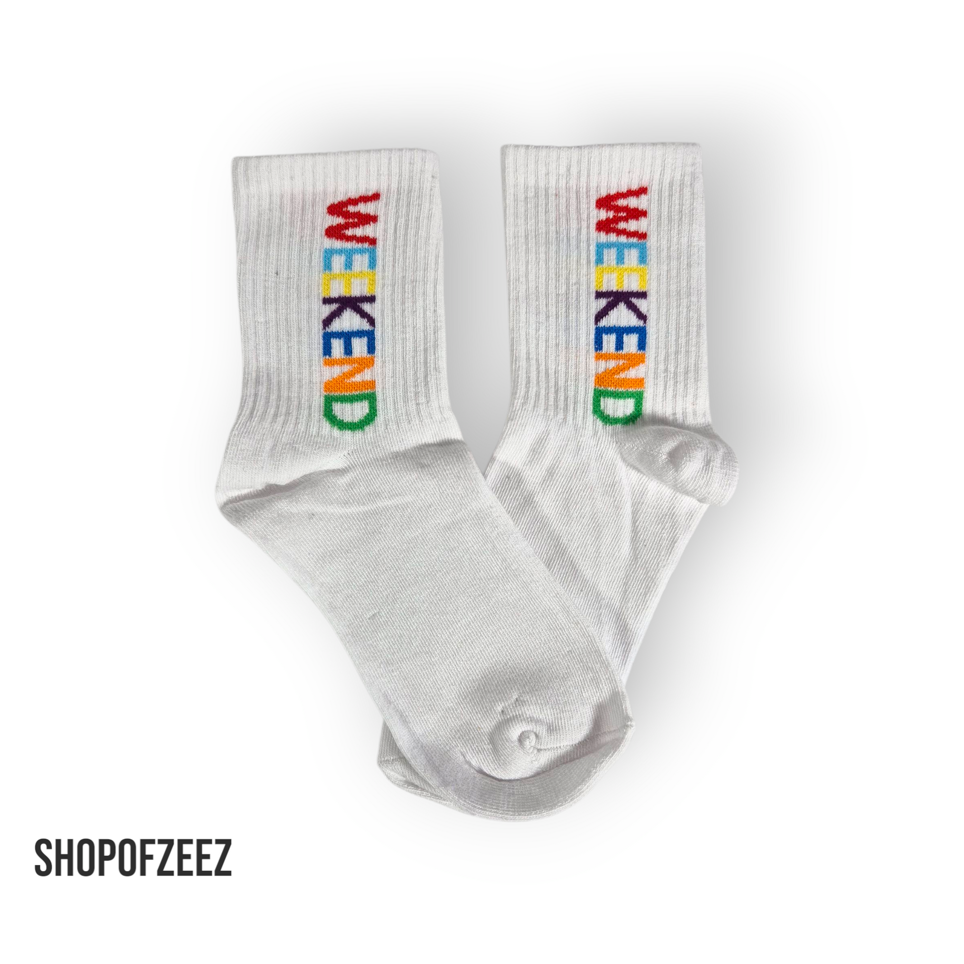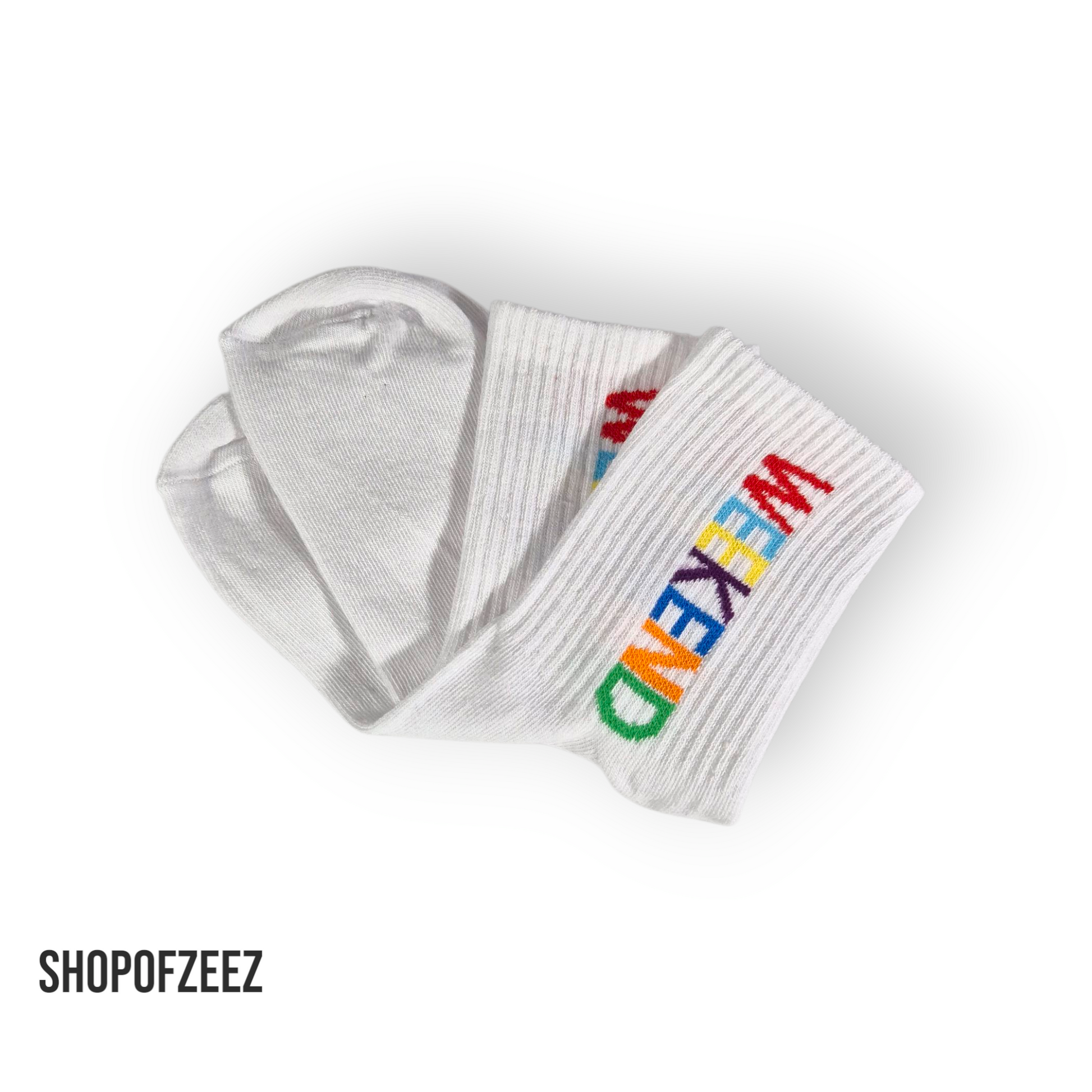 weiße Unisex-Socken mit „WEEKEND“-Motiv